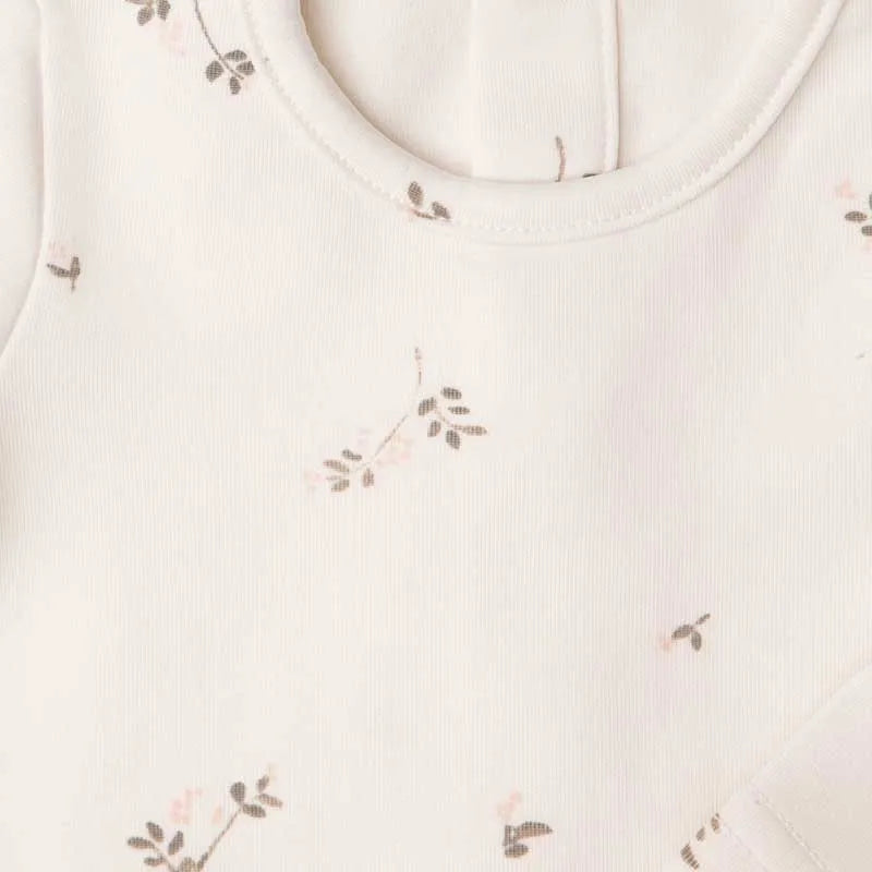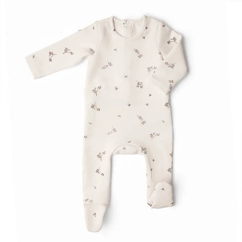 A whimsical autumn leaf pattern adorned with delicate light pink or blue flowers, this soft and breathable ensemble is perfect for any aged baby. The 100% cotton fabric ensures gentle comfort against sensitive newborn skin. Available in pink or blue floral accents.